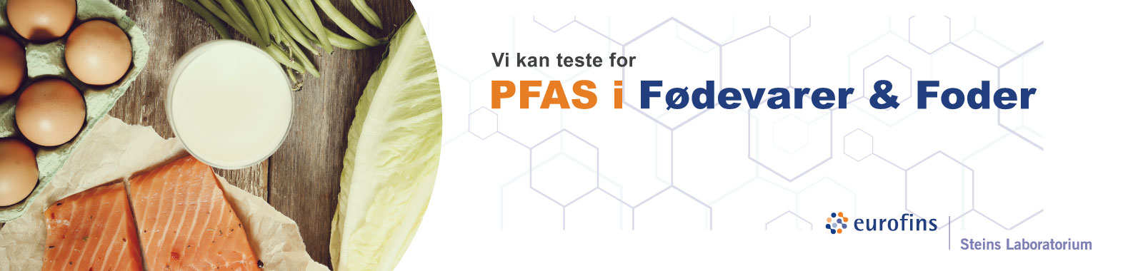 Eurofins Steins Laboratorium A/S, tilbyder at teste fødevarer for indhold af PFAS/PFOS i blandt andet kød, æg, mælk, fisk, skaldyr, frugt og grønt, foder og landbrugsafgrøder. Vi tilbyder desuden i Eurofins Milk Testing A/S at teste blod fra levende dyr og kreaturer før slagtning.